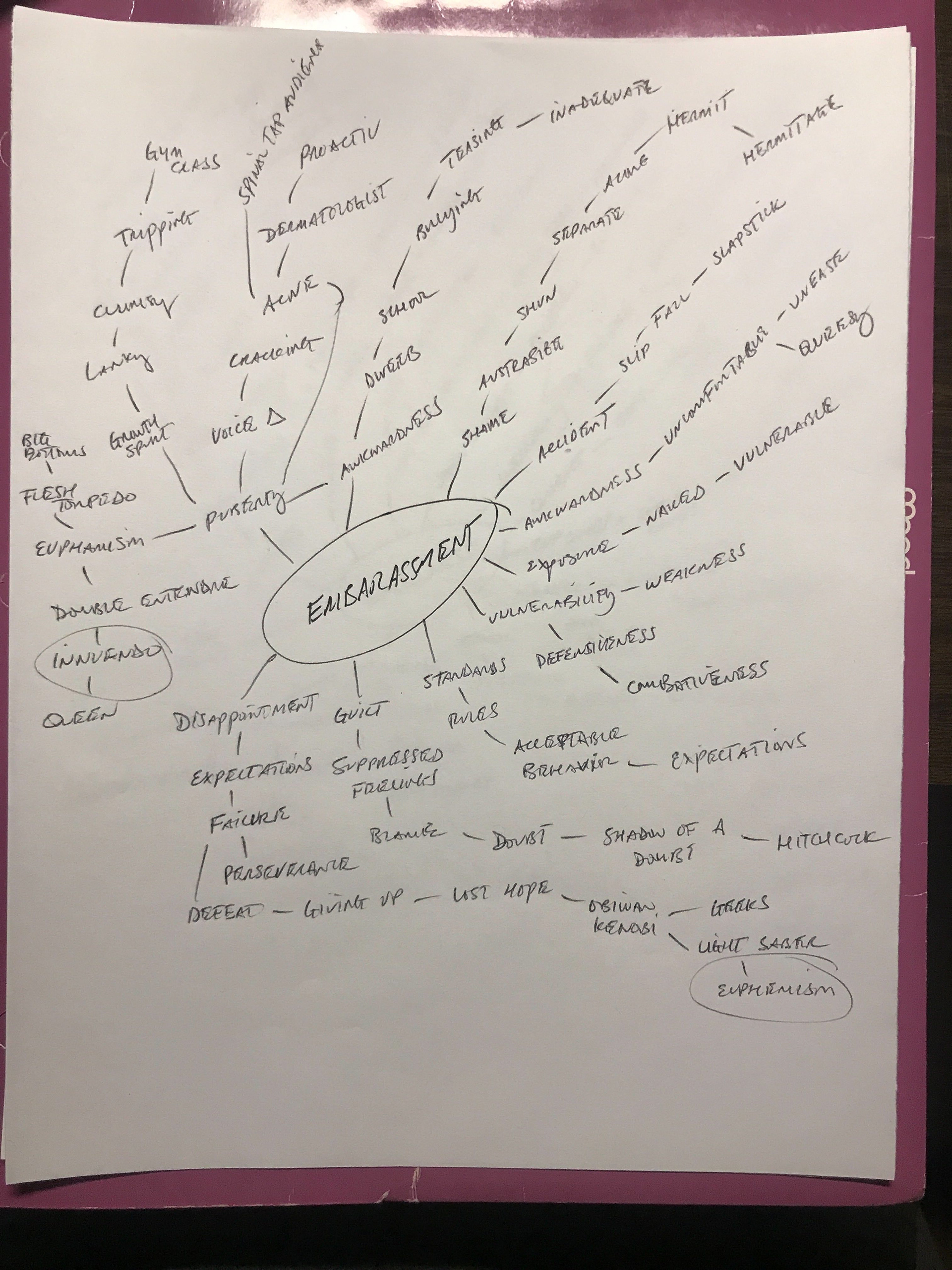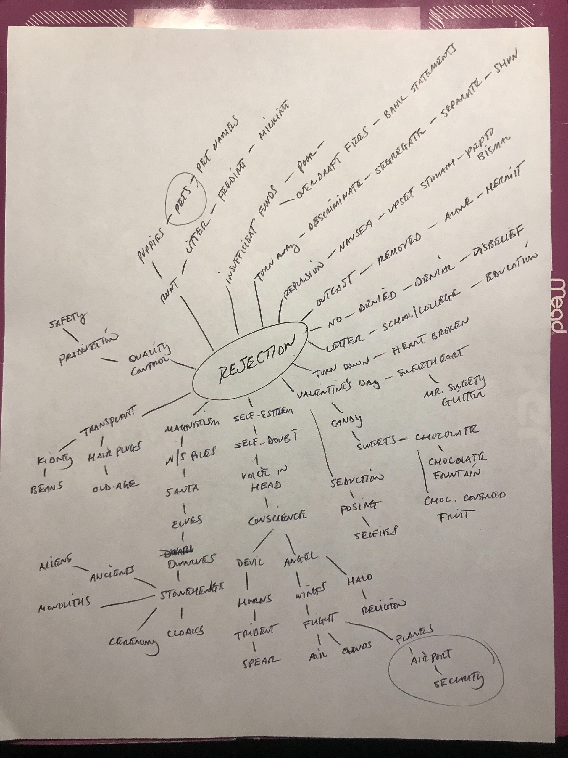 Working from three main themes discovered while watching (re-watching) the movie, creating mind maps to explore connections.