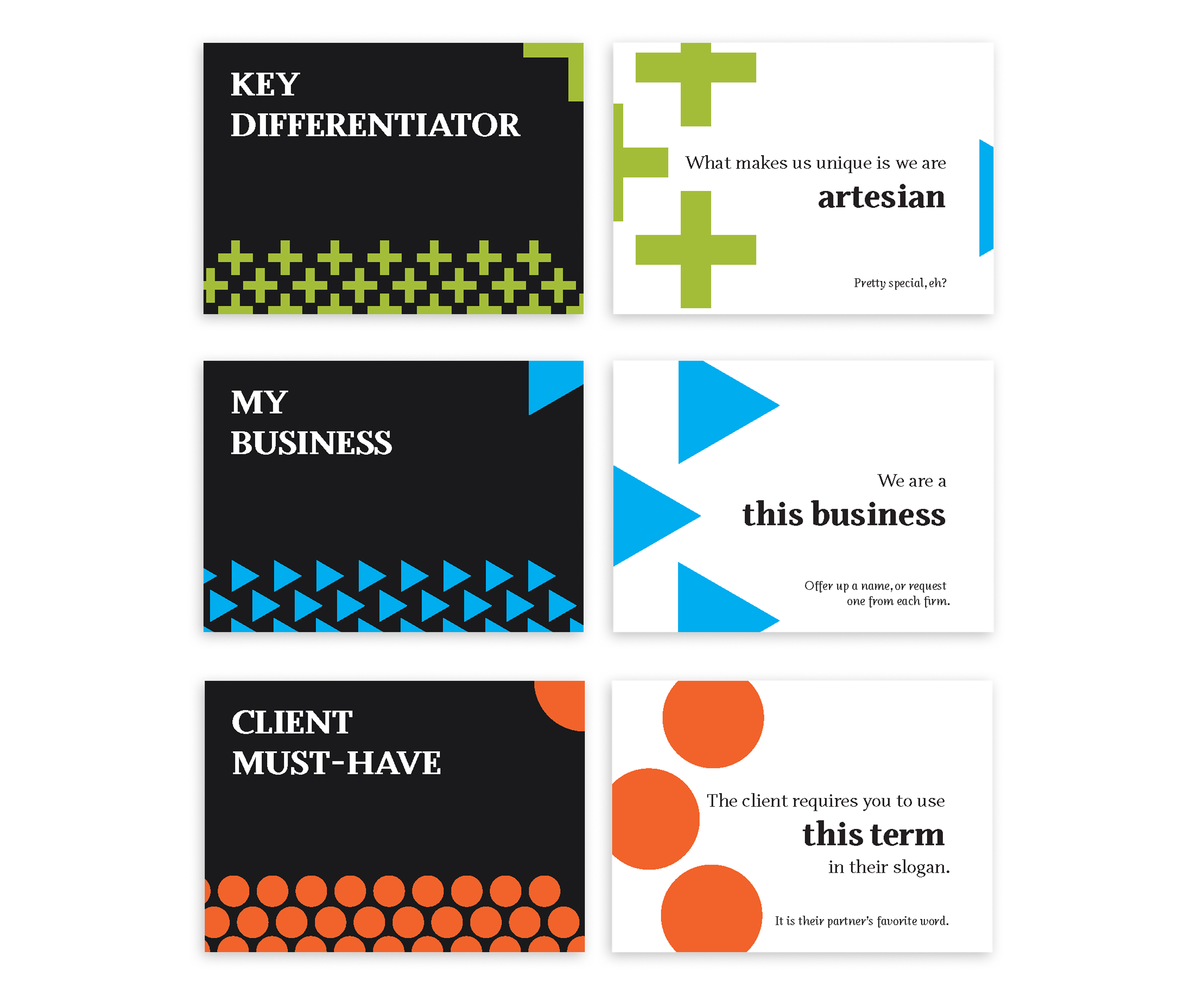The rebranding project started with creating a visual system that could accommodate the broadest audience. Brand colors and basic shapes were chosen to help distinguish the different card types from one another.