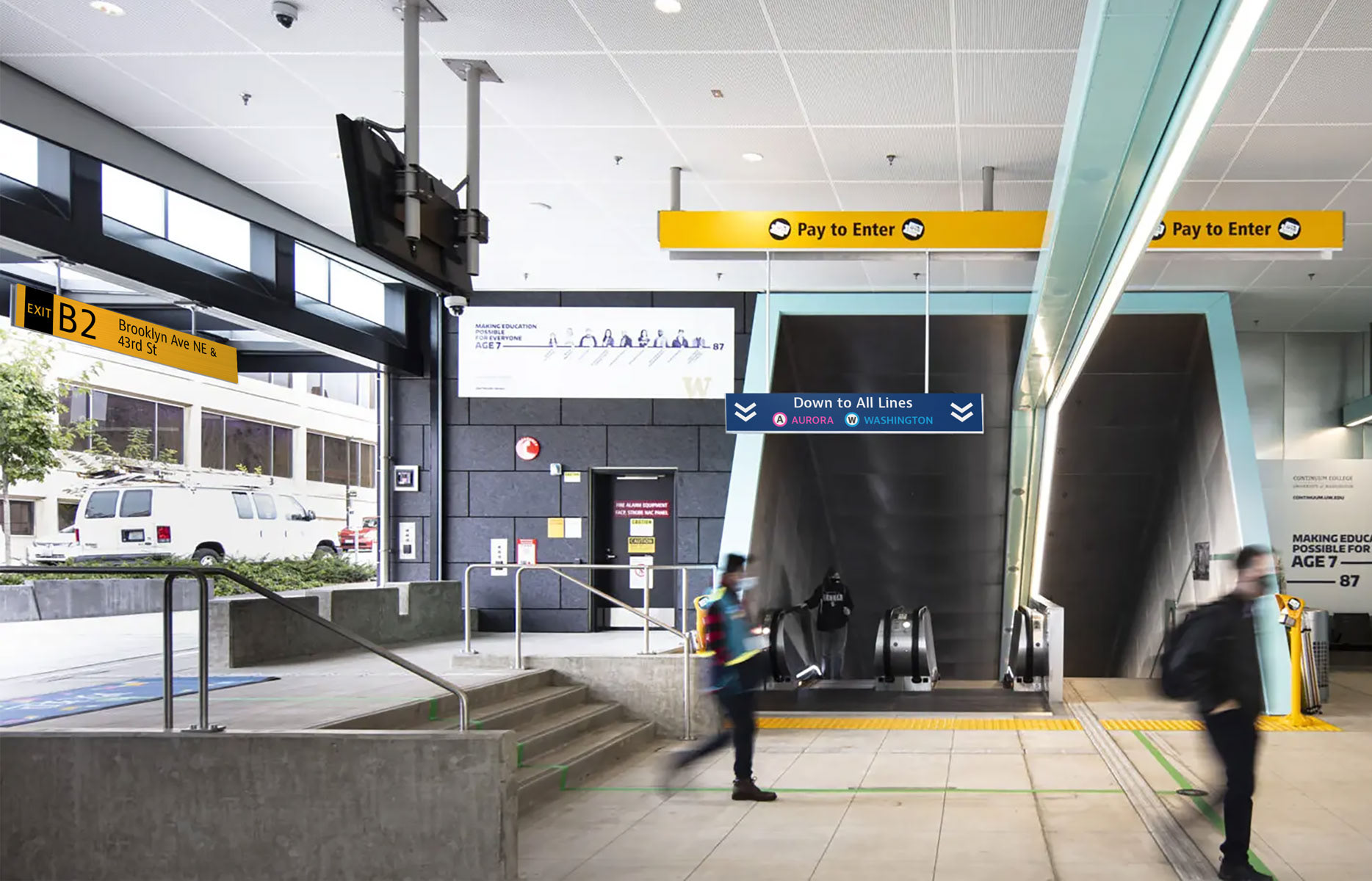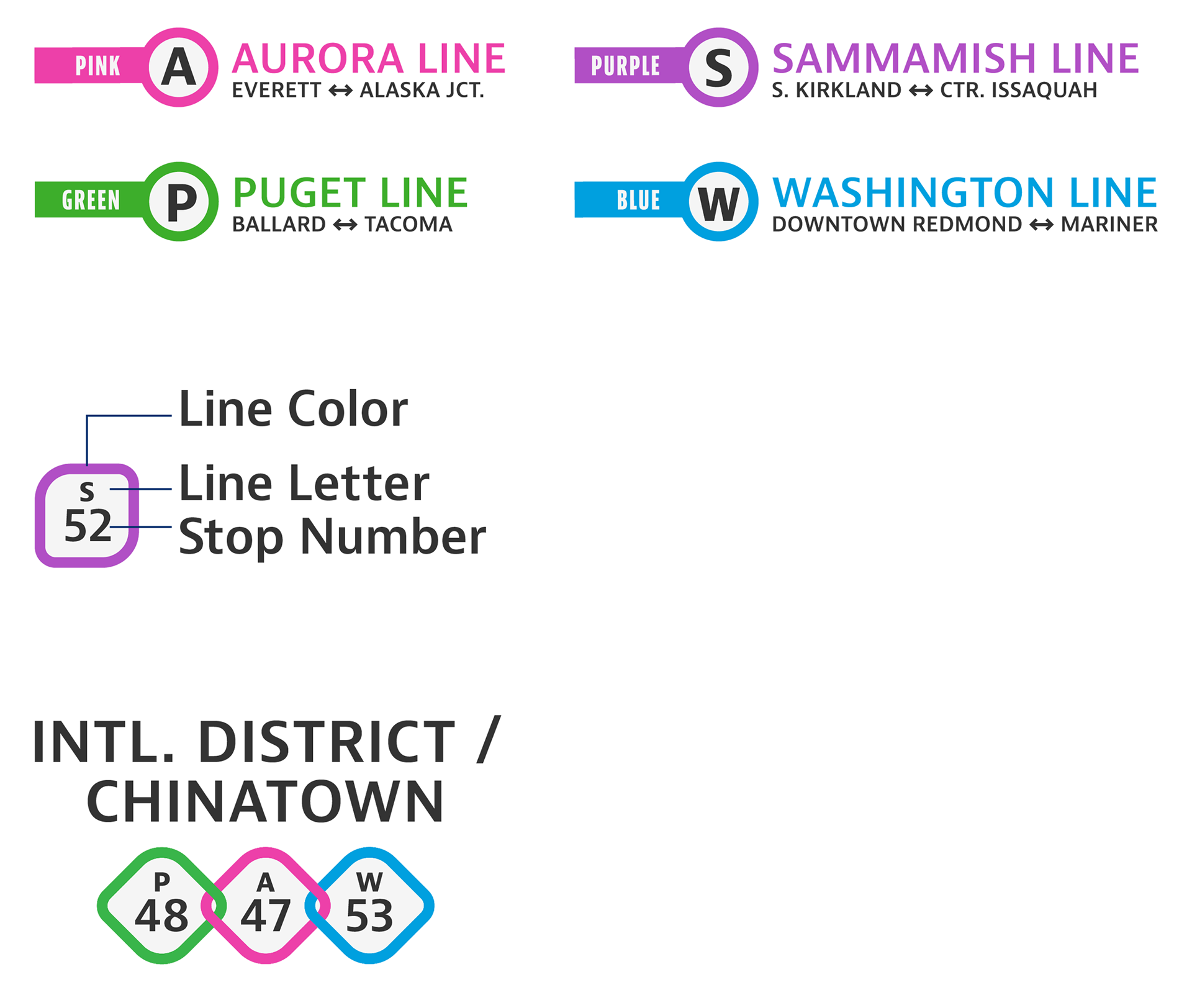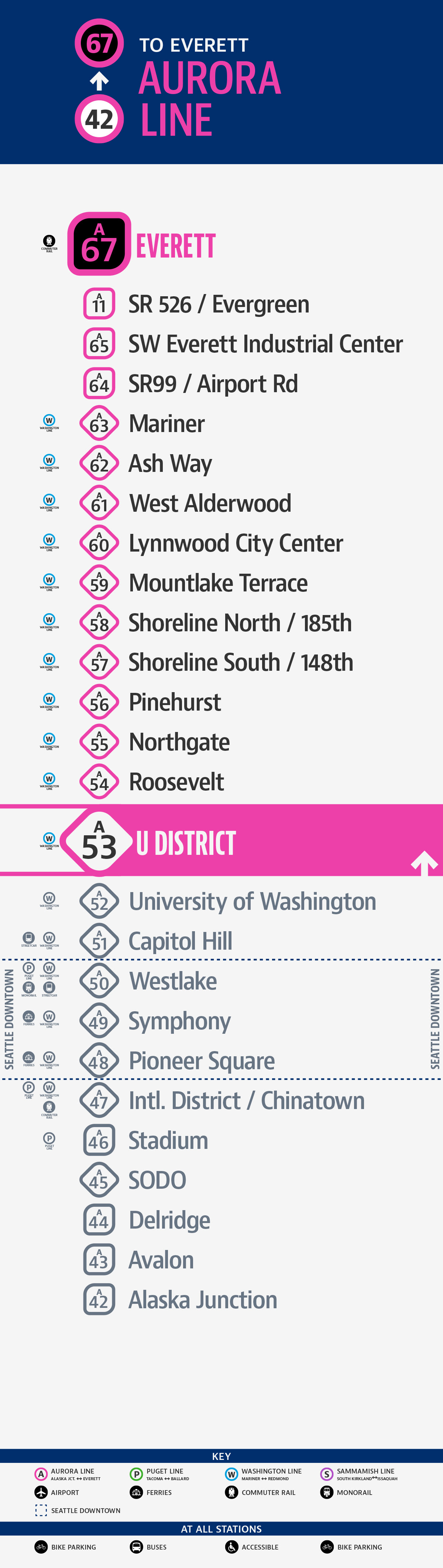 Section of full service map highlighting Seattle downtown stations and inversion of station numbers from Capitol Hill upward.