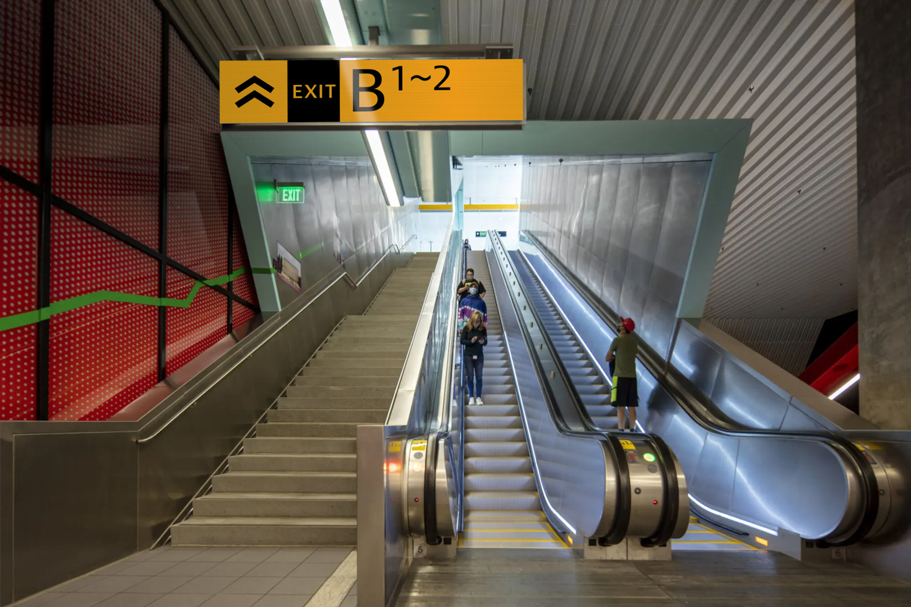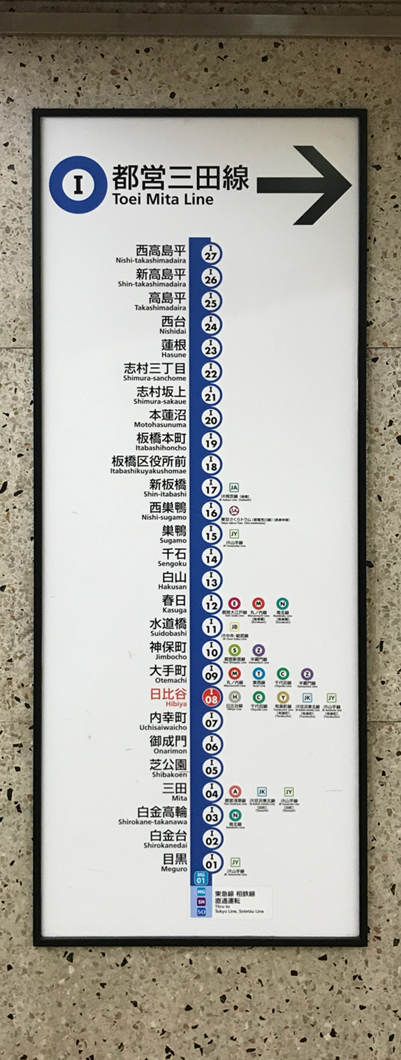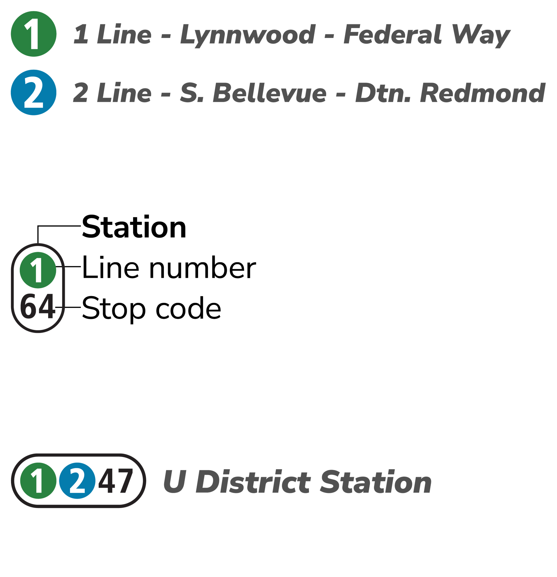 Providing the current station number alongside the line terminal helps riders quickly identify ascending or descending lines.