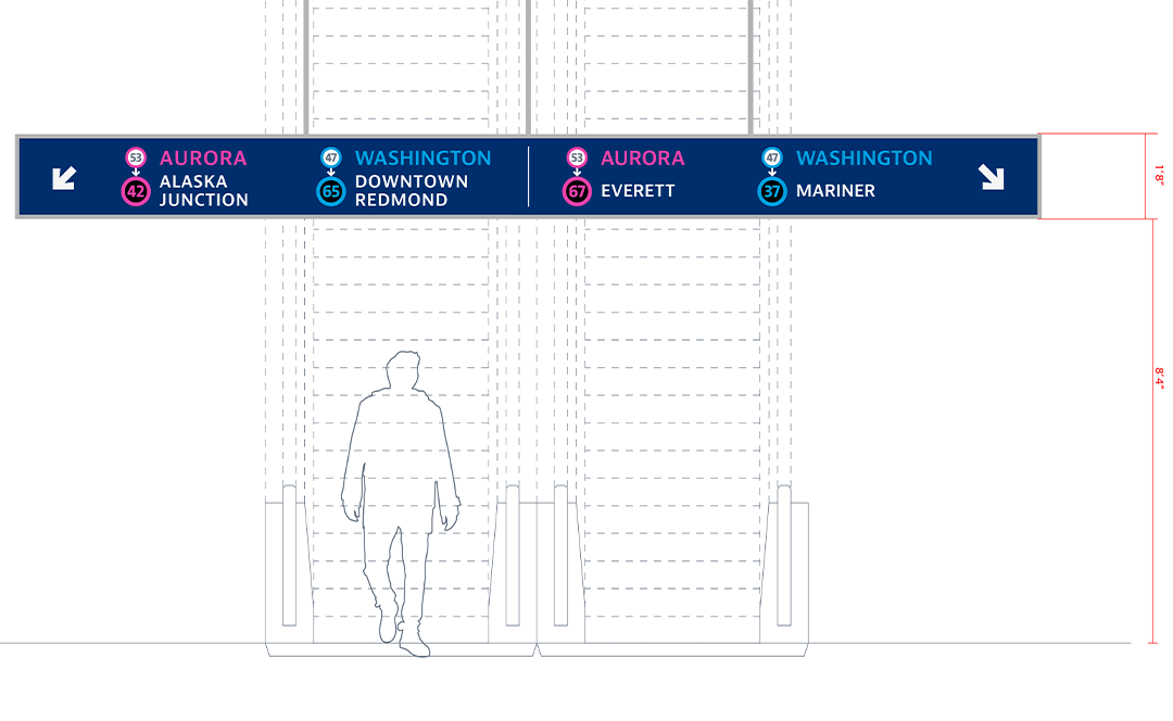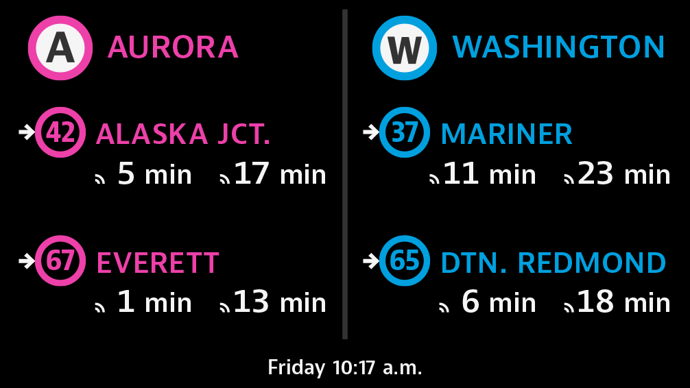 Existing Real-Time Arrival signage listing a single line traveling in two directions intermittently.